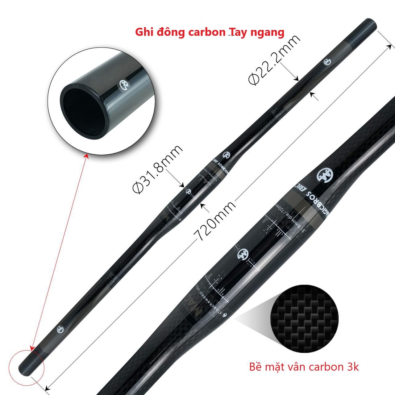 Ghi đông, potang, cọc yên carbon cho xe đạp tay ngang Magicbros