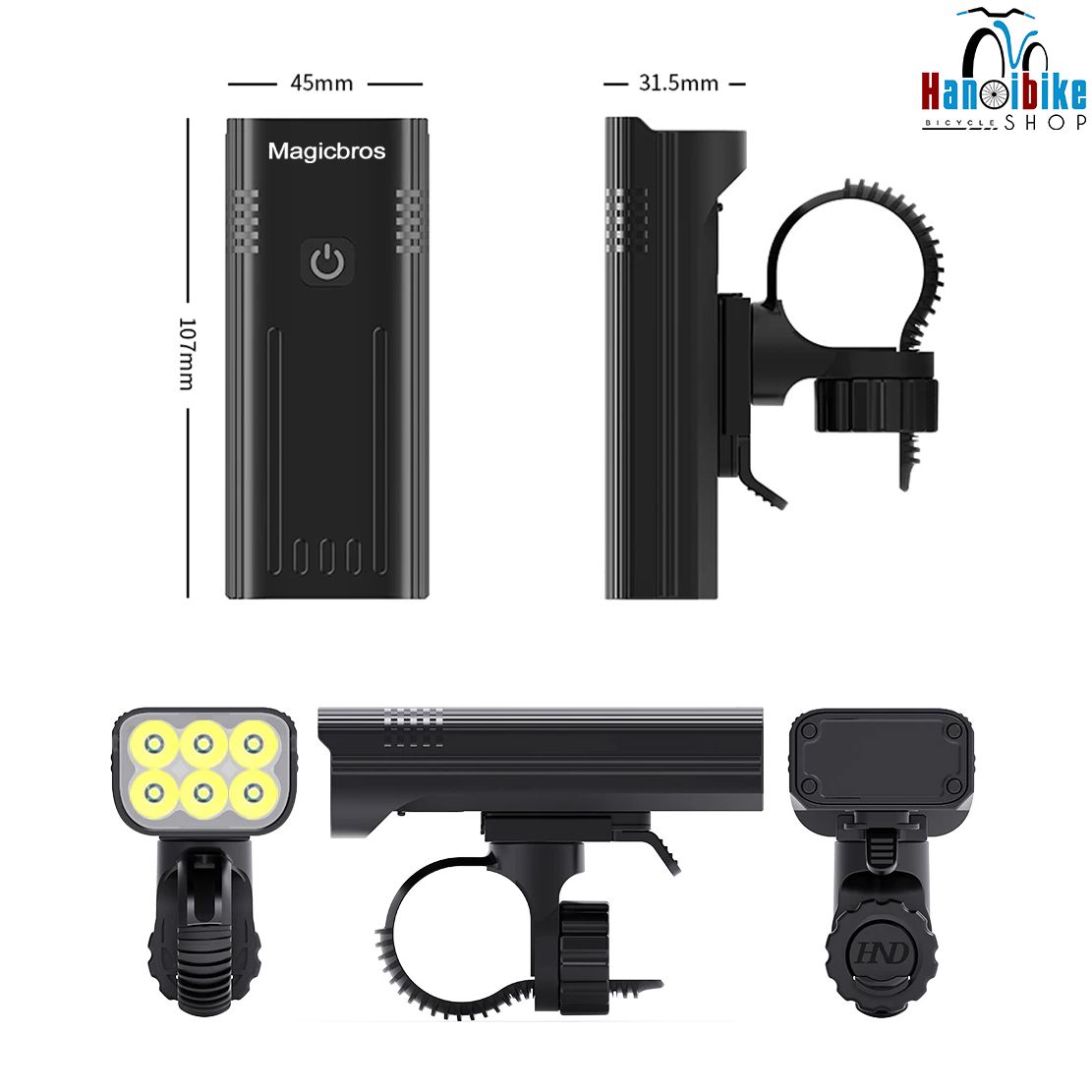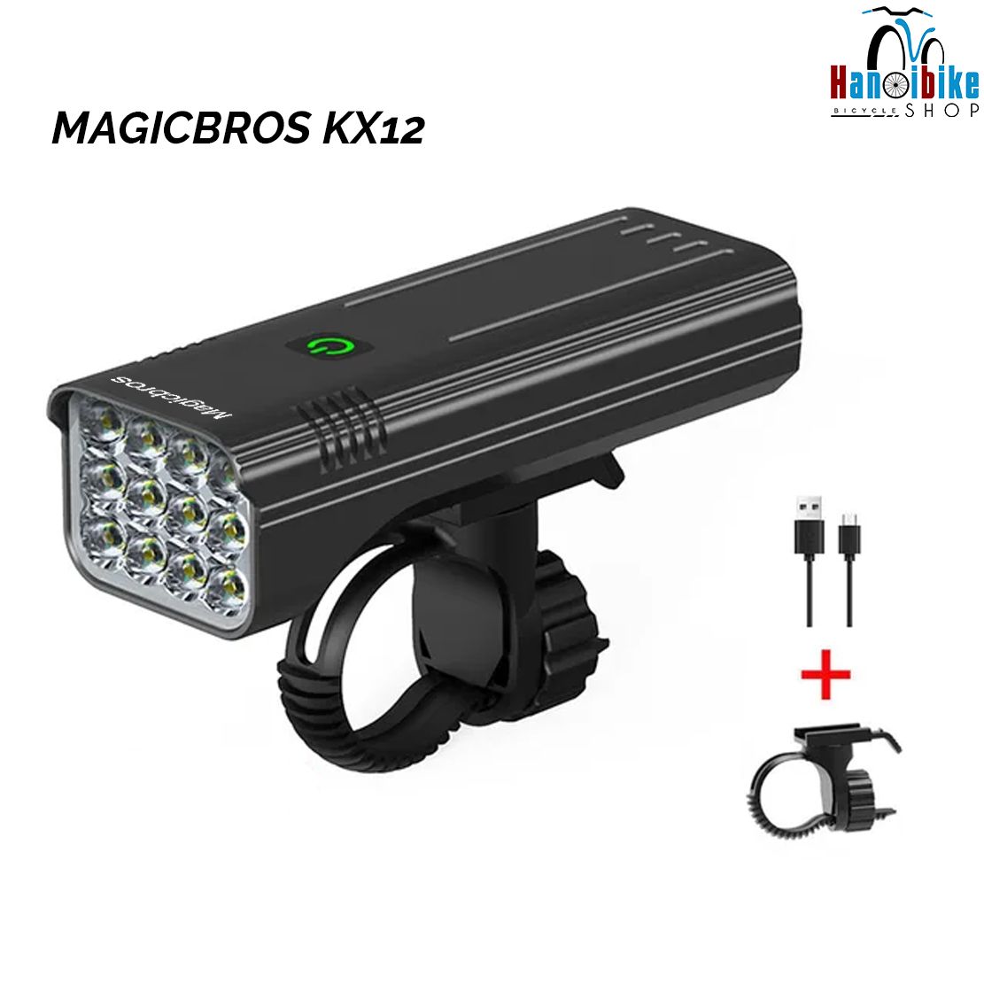 Đèn trước gắn ghi đông xe đạp Magicbros KX12 siêu sáng 12 pha