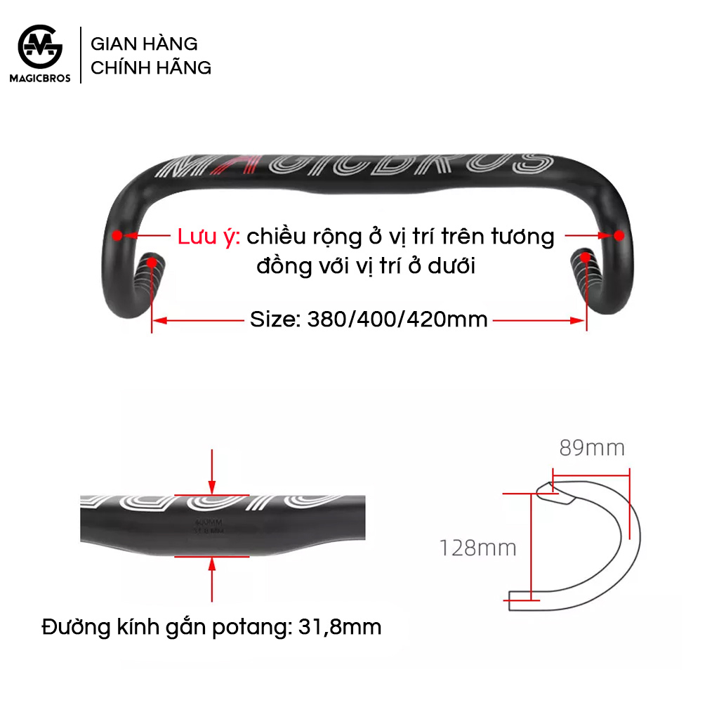 Ghi đông cong xe đạp Road MagicBros tròn LOGO
