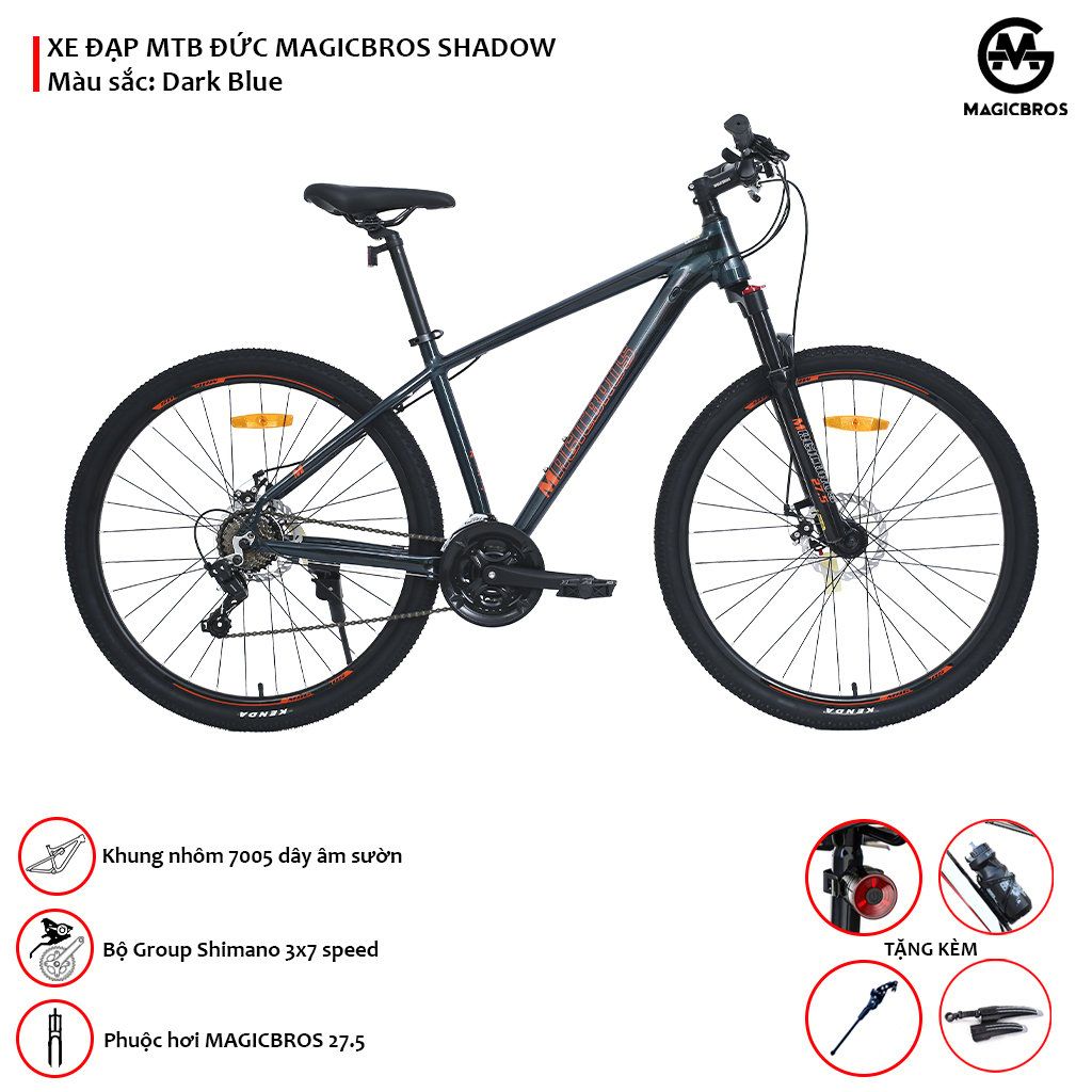 Xe đạp thể thao Magicbros Shadow màu Xanh đậm chữ cam